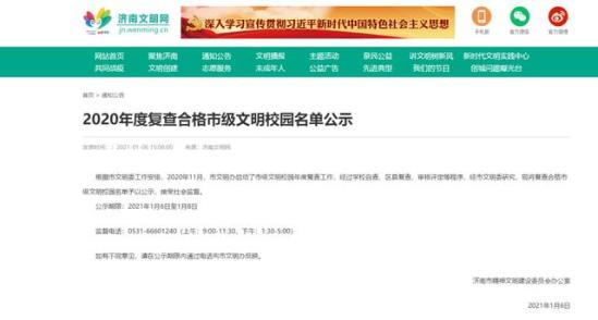2020年11月,济南市文明办启动了市级文明校园年度复查工作,经过学校自查、区县复查、审核评定等程序,近期市文明委公布了复查合格市级文明校园名单。位于莱芜区的41所学校和位于钢城区的13所学校(包含市直学校中的位于莱芜区钢城区的学校)位列名单之中。