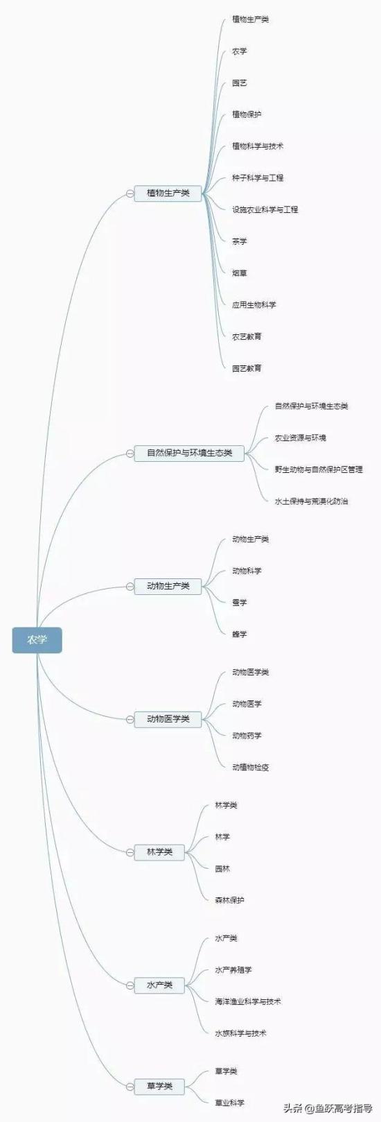大学专业可以分为12个门类,分别是:哲学、经济学、法学、教育学、文学、历史学、理学、工学、农学、医学、管理学、艺术学。而这12大类下面分为了98个学科,学科下属的才是各个具体专业。