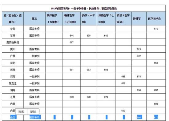 山西医科大学山西省2021年本科招生录取分数线