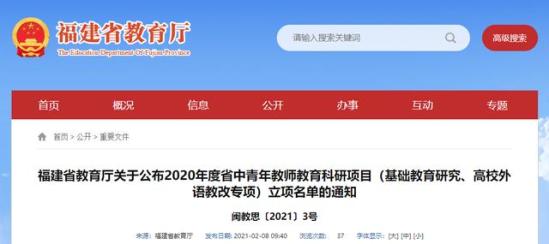 福建省中青年教师教育科研项目的基础教育研究专项予以立项,