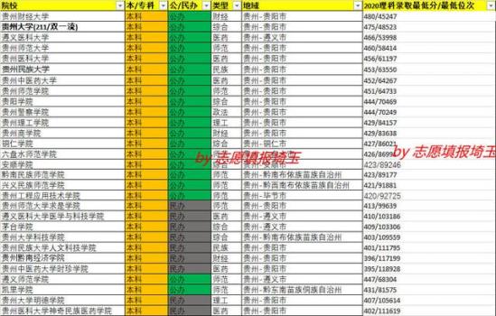 2020年贵州高考本科二批理科录取最低分/最低位次排名,具体如下: