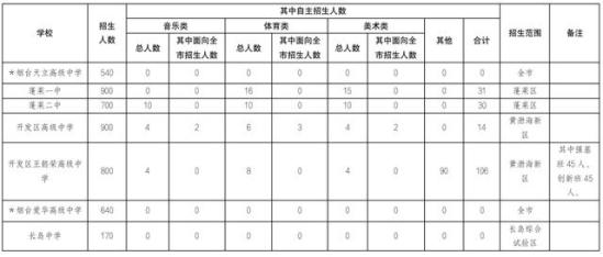 注:1.学校前加“*”为民办学校。2.获批省、市级体育专项特色高级中学称号的14所普通高中,可面向全市范围招收具有获批项目专项特长的学生;获批市级艺术特色学校称号的11所普通高中,可根据学校艺术特色项目建设需求,在全市范围内招收艺术特长生。