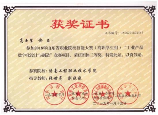 山东省大学生新近成图技术与产品信息建模创新大赛二等奖