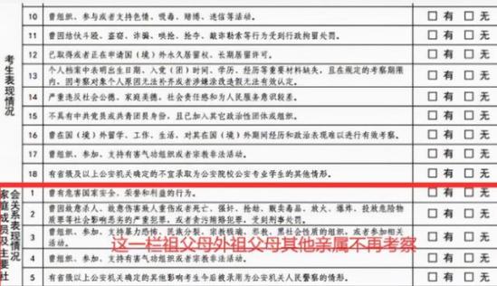 以往的政审不仅范围广,标准还很严格,只要直系亲属有一点违法乱纪的行为,例如酒驾、打架斗殴等“前科”,也都会直接影响考生的政审。