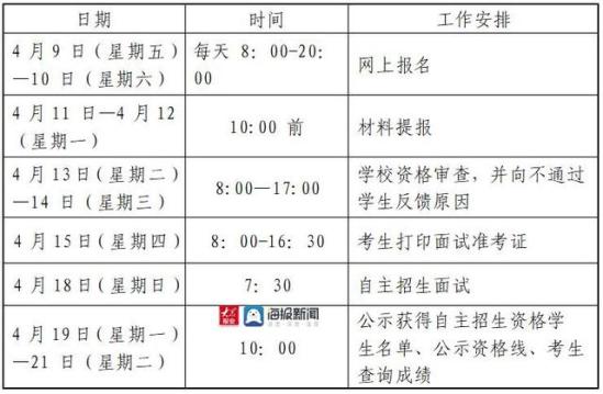4月19日(星期一)10:00,学校在官方网站公示获得自主招生资格的学生名单及资格线,同时学生登录学校网站,凭学籍号、自招序号查询自招成绩。公示期三天。