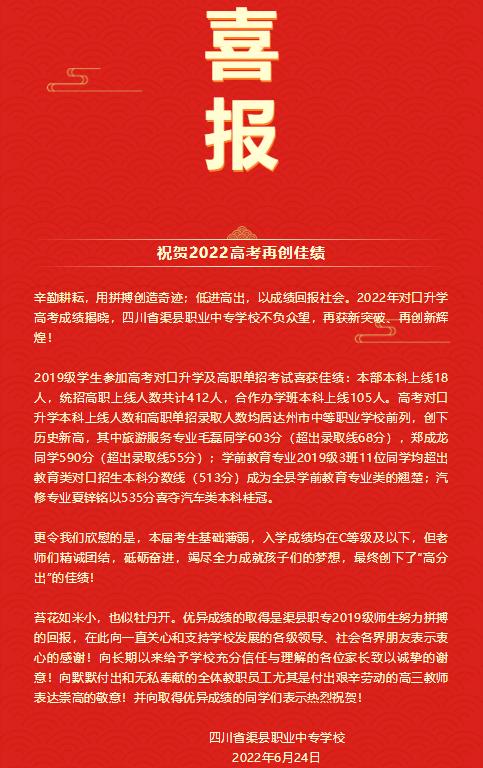 近几年,国家对职业教育支持力度加大,最明显的就是升学比例增加,以前读中职不容易考大学,现在读中职是真好考大学!→2022年四川中职生对口高考喜报频传