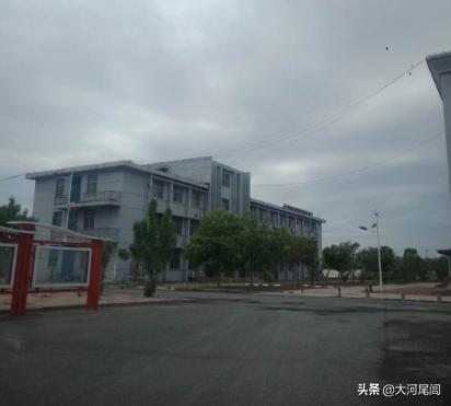 这个建筑上的字不清楚了,如果写的是”严肃活泼“这四个字,那至少这里以前是个学校。是不是河口较小就不知道了。最起码从大门口的雕塑,还有油田特有的那种五层楼的公寓楼,就知道这以前是各油田的学校。