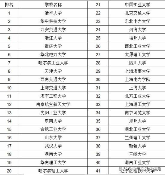 根据教育部最新第四轮电气工程学科评估结果可知:全国共有41所大学参与了电气工程及其自动化专业大学排名,其中排名第一的是清华大学,排名第二的是华中科技大学,排名第三的是西安交通大学,排名前十的大学还有浙江大学、重庆大学、华北电力大学、哈尔滨工业大学、天津大学、西南交通大学、上海交通大学,以下是具体榜单,供大家参考。