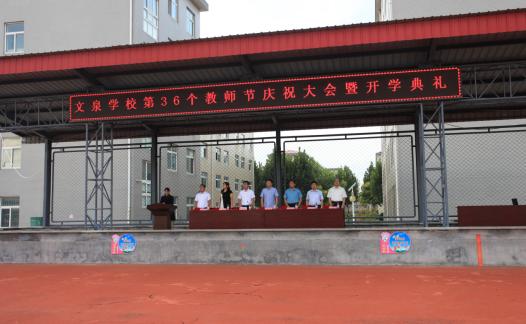 9月10日上午08:00时,莱州市文泉学校全体师生在操场上隆重举行第36个教师节庆祝大会暨2020-2021学年度开学典礼活动。活动现场举行了庄严的升国旗仪式,教师代表带领全体教师宣誓,对2019-2020学年度先进个人进行了表彰和颁奖,教师和学生代表分别进行表态发言,最后校领导发表了热情洋溢的讲话。
