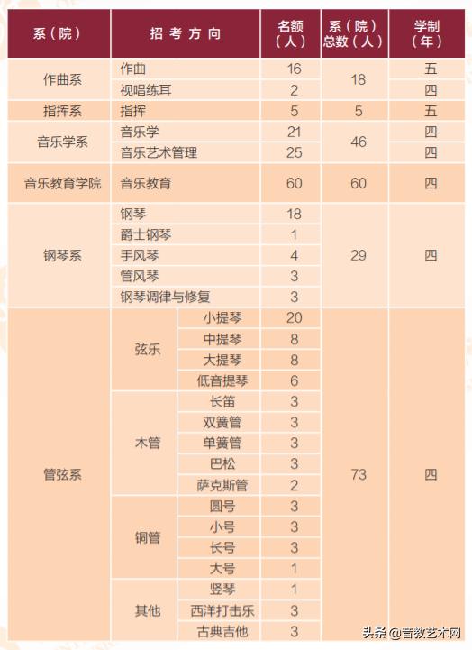 国内的十二所音乐学院一定是很多音乐生向往的音乐殿堂,作为专业院校来说,音乐学院的专业设置和数量一定是最全面的,专业的招生人数相对较多。我们可以看一下中央音乐学院2022年招生简章中列出的招生专业和人数。