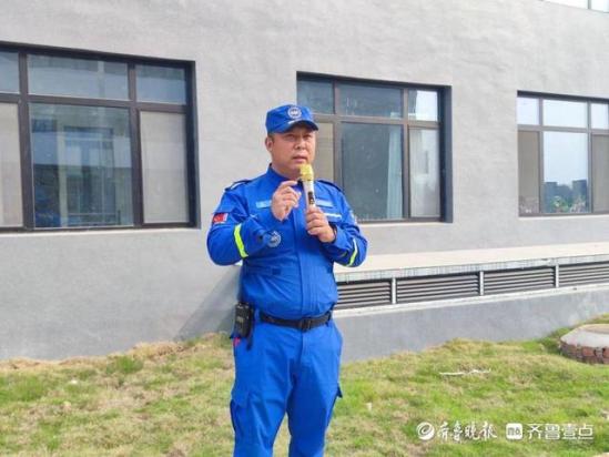 学校老师、宿管员、保安以及枣庄蓝天救援队9名队员分别在楼道内、楼梯口、出口处指挥疏导学生安全有序“逃生”。枣庄蓝天救援队王伟队长告诉学生们,遇到相关情况大家不要恐慌,不要拥挤,要在老师或者宿管员的带领下,用湿毛巾或衣袖遮住口鼻,同时要低身前行,这样可以避免吸入浓烟,并迅速疏散撤离到安全地带。