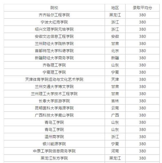 380分可以报考的大学名单