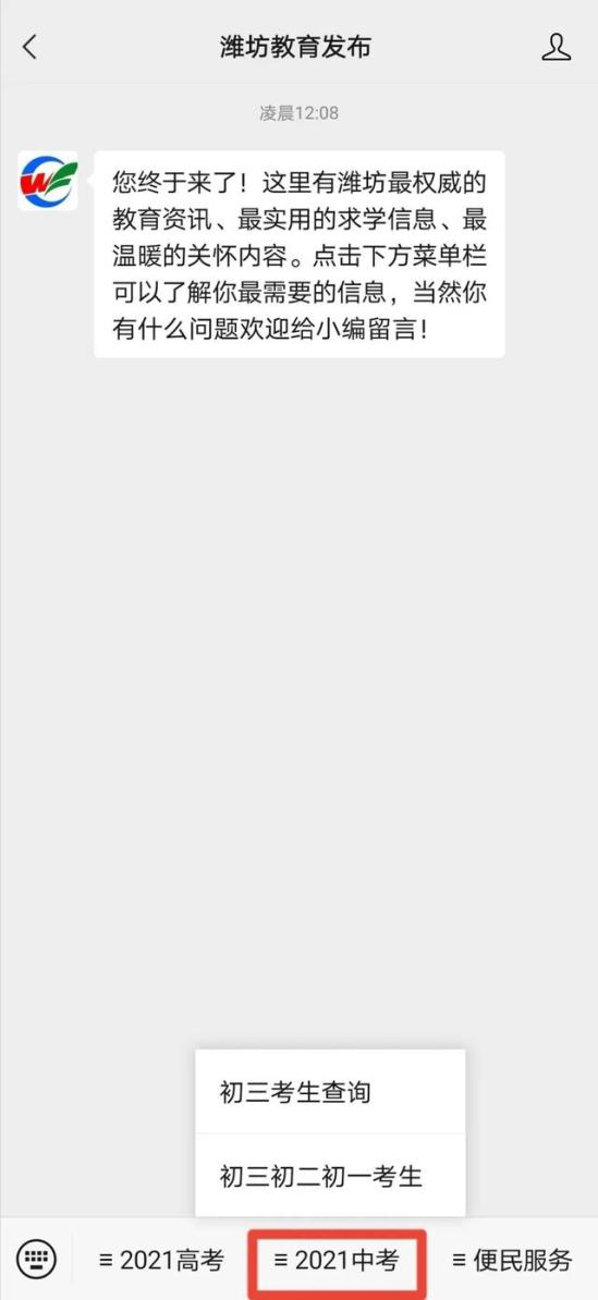 方式1:通过“潍坊教育发布”微信订阅号查询