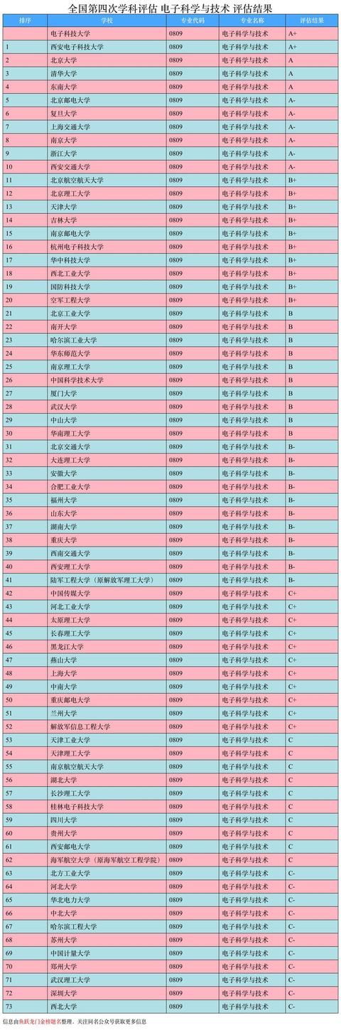 第四次学科评估结果,采用电子科学与技术二级学科。