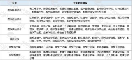 以天津医科大学和复旦大学为例,医学技术类专业不同方向课程如下: