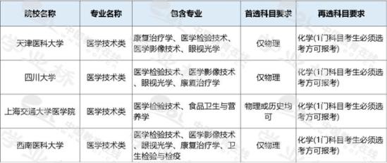 在3 1 2模式下,大部分院校的医学技术类专业要求首选科目必须为物理,如天津医科大学、四川大学等,少数院校对首选科目无要求,如上海交通。