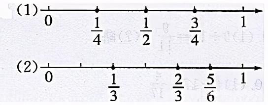 第(2)条直线上的最小刻度用分数表示是1/6,它是5/6的分数单位。