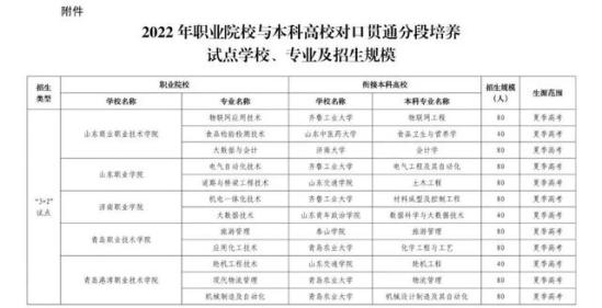说在前:今年4月份,山东省教育厅发布了《关于下达2022年职业院校与本科高校对口贯通分段培养试点任务的通知》,也就是我们通常所说的“3 2”专本连读,确定了山东省2022年职业院校与本科高校对口贯通分段培养试点学校、专业及培养规模。
