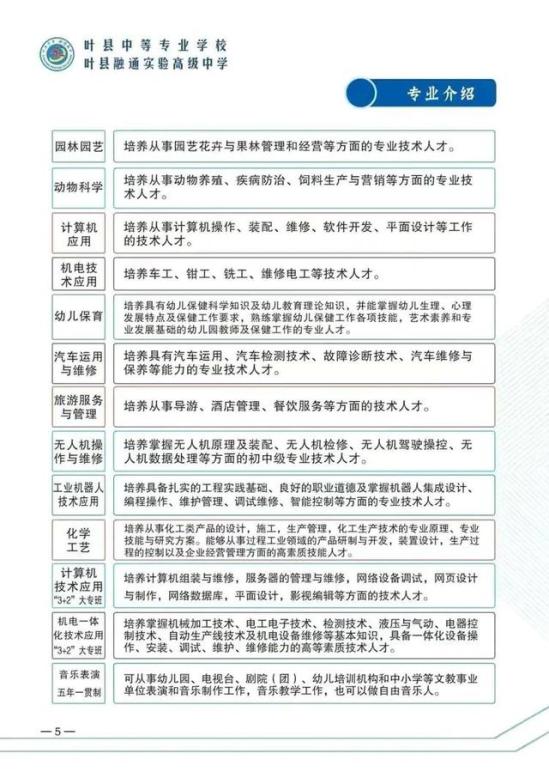 叶县中等专业学校今年计划招生如下: