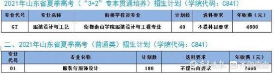 服装设计与工艺专业(本科“3 2”对口贯通培养)前三年在山东服装职业学院学习,后二年在泰山学院学习,前3年学费4800元/年。