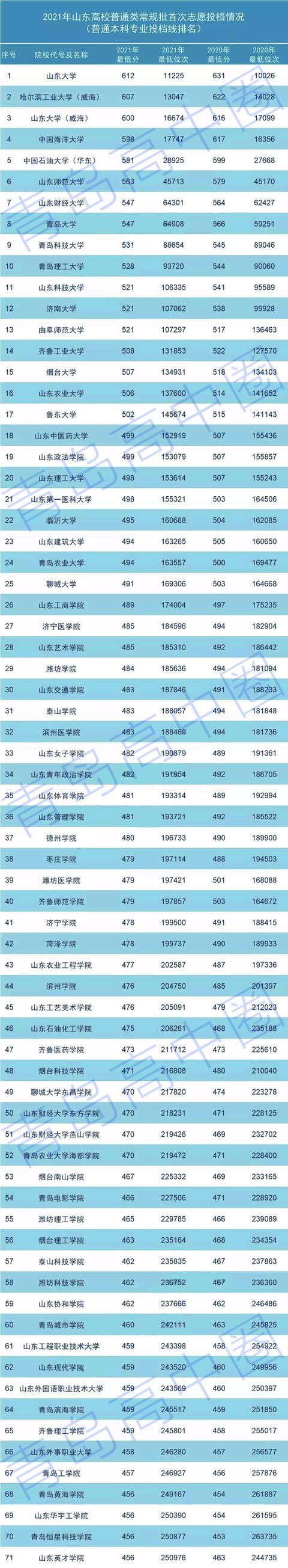 我们再一起来看看山东省内各所高校的具体投档线以及排名情况吧~