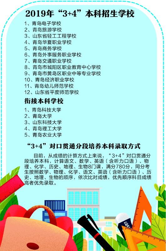 “3 4”总体招生相对稳定,但从历史长轴上来看,变化还是存在的。2018年,青岛市“3 4”对口贯通分段培养试点中等职业学校有11所,共计14个专业点,衔接本科高校5所,培养规模711人。今年3月份,青岛市召开2019年招生工作会议,政策中明确了多项有关中考的变化,其中提到继续开展“3 4”对口贯通分段培养,招生政策保持稳定。还将争取省教育厅的支持,拟对部分“3 4”合作的本科高校进行调整,适当增加部分招生计划。