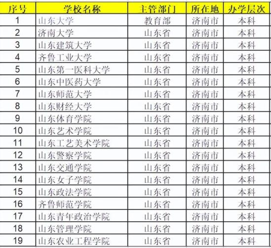 其中,济南公办大学19所,以下是具体名单(不包含军事院校):
