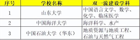 从全国范围来看,共147所高校入围第二批“双一流”建设高校,其中北京34所、江苏16所、上海15所,广东、陕西、湖北、天津、湖南、辽宁、黑龙江的高校上榜数量进入全国前十,山东与吉林、浙江、安徽处于“同一梯队”,均上榜3所高校。作为一个人口大省、经济大省,山东省的双一流院校在数量上不占优势,具体见下表:
