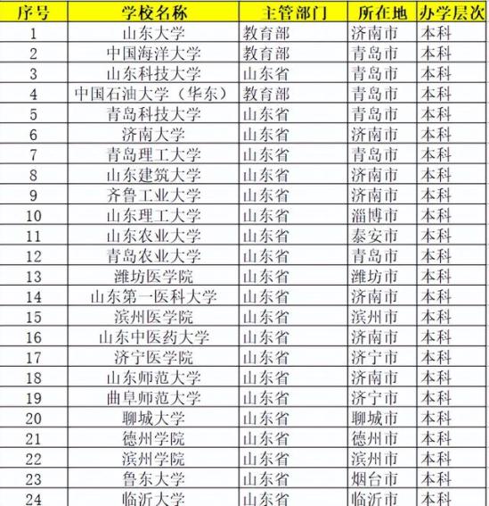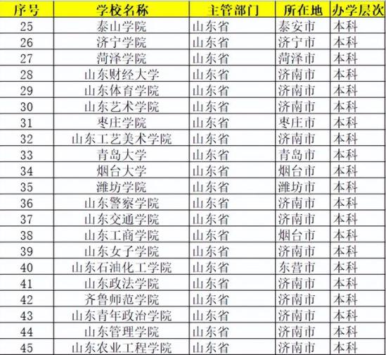 截至2021年9月30日,山东省拥有公办本科大学45所,以下是具体名单(不包含军事院校):