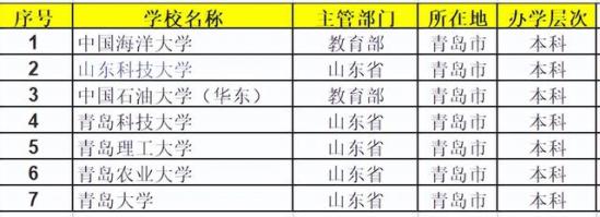 其中,青岛公办大学7所,以下是具体名单(不包含军事院校):