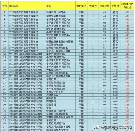 2022年,上述四所学校共计在山东招生4451人,比去年略有减少,其中,淄博师专招生1647人,济南幼儿师专招生1050人,青岛幼儿师专招生1094人、烟台幼儿师专招生660人。今年招生的一大特点是四所学校全部取消了校企合作专业的招生。