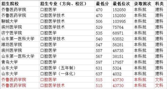 山东口腔医学专业大学排名(按2019年最低录取分数线及最低位次)