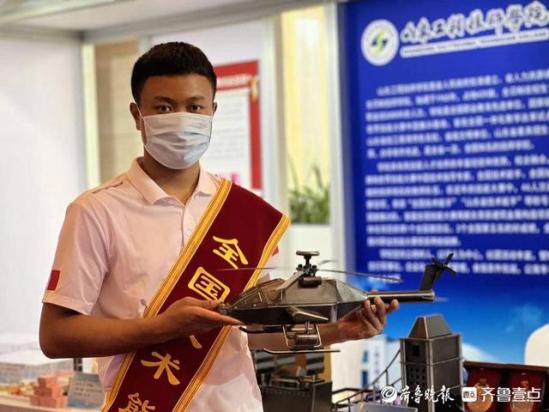 在山东工程技师学院展区,伦敦桥模型、古船模型这两件建筑金属构造作品均为周新东制作,他也是中国第一届职业技能大赛建筑金属构造项目第一名获得者。