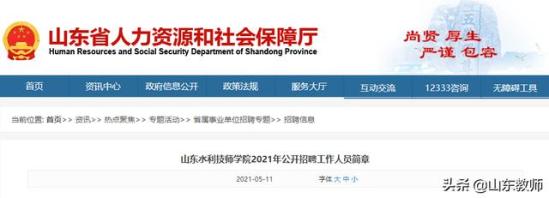 通过省人力资源社会保障厅网站(http://hrss.shandong.gov.cn/)、山东省水利厅网站(http://wr.shandong.gov.cn)和山东水利技师学院网站(http://www.sdcw.net)面向社会发布招聘信息。