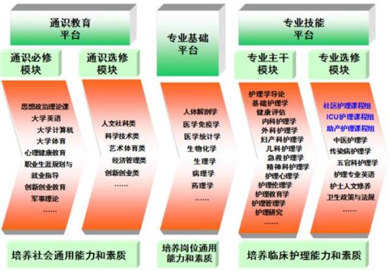 在学校办学定位和人才培养定位基础上,结合护理学专业特点,形成了“夯实基础、注重人文、强化技能、拓展创新”的应用型护理人才培养理念,在重视护理技能培养的同时,将人文素质教育贯穿人才培养全过程,致力于培养基础理论扎实、专业知识面广、实践能力强、综合素质高、具有创新精神、创业意识、人文关爱精神和职业素养的高级应用型护理人才。