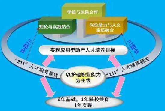 本专业经过多年实践和探索,创新性提出并实施“211”人才培养模式,即“2年基础,1年院校共育,1年实践”的“211”应用型护理人才培养模式。该模式以培养应用型护理人才为出发点和主线,强调理论与实践结合,岗位能力与人文素质融合,学校与医院合作育人,实现人才培养目标。2012年,本专业承担的“‘211’应用型护理人才培养模式创新实验区”项目被列为省级人才培养模式创新实验区建设项目。