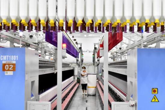 6月26日,在山东正凯新材料股份有限公司,工作人员在加工高端纱线。 图 / 新华社
