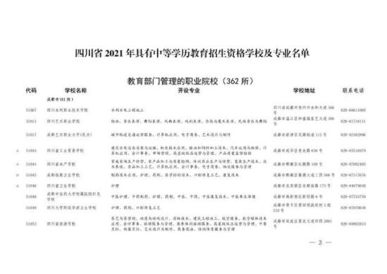 此前,四川省2021年具有中等职业学历教育招生资格学校有456所。其中,教育部门管理的职业学校362所,开设专业280个,开办专业点2975个;人力资源社会保障部门管理的技工院校94所(其中,技师学院20所,高级技工学校14所,普通技工学校60所),开设专业160个,开办专业点894个。
