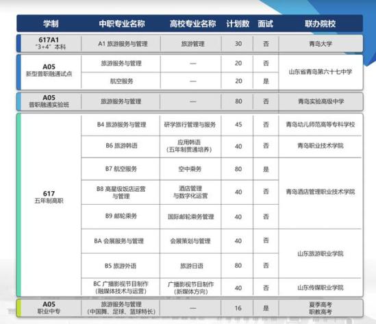 青岛旅游学校致力于培养集服务型、技能型、创新型于一体的综合素质高、德技兼修、可持续发展的现代旅游业复合型人才。截至目前,青岛旅游学校有“3 4”本科、新型普职融通实验班、普职融通实验班、五年制贯通培养、三二连读高职和职业中专等办学模式,开办旅游服务与管理、航空服务、高星级饭店运营与管理、邮轮乘务、旅游外语(日语)、旅游韩语、会展服务与管理和广播影视节目制作(融媒体技术与运营)等专业。其中,今年新增的广播影视节目制作专业,紧抓人才缺口大、就业前景广阔等机遇,通过三二连读培养技能型新媒体人才。