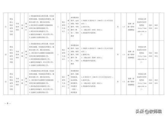 根据《事业单位人事管理条例》(国务院令第652号)、《事业单位公开招聘人员暂行规定》(人事部令第6号)等文件要求以及省、市有关规定,结合工作需要,青岛幼儿师范高等专科学校拟面向社会公开招聘46人。具体岗位及条件详见《青岛幼儿师范高等专科学校2022年公开招聘工作人员岗位汇总表》(附件)。