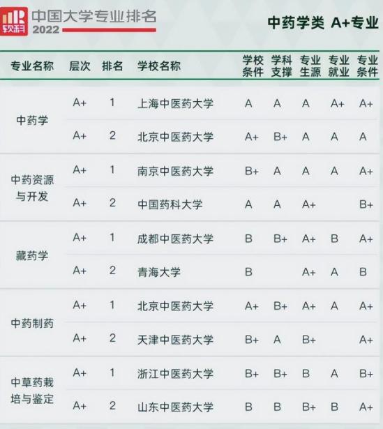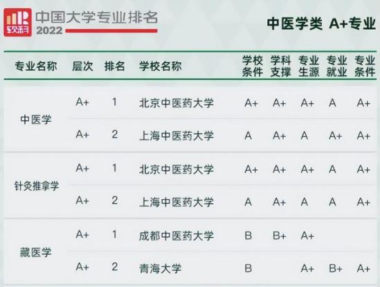 这些A也就是专业真正的含金量,比如中医学上,北京中医药和上海中医药就是天花板。而在藏医学上,成都中医药和青海大学就是天花板。