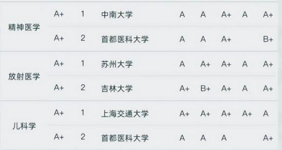 另外中南湘雅和首都医科大的精神医学也值得提名,还有985吉大和苏州大学的放射医学。压力最大的儿科学给到了上海交大和首都医科大,这一专业学生对于情商的要求也很高。