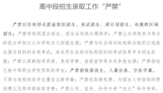 高中段招生录取工作“严禁”