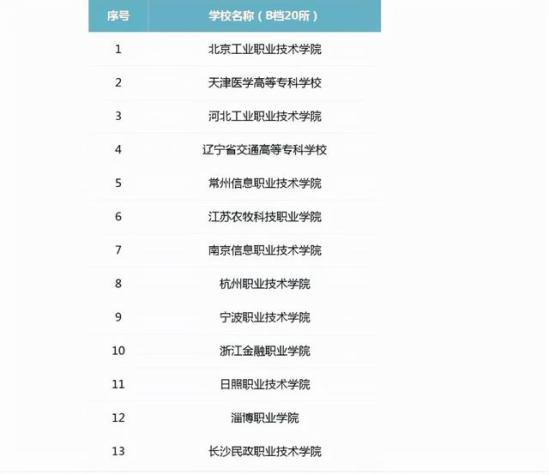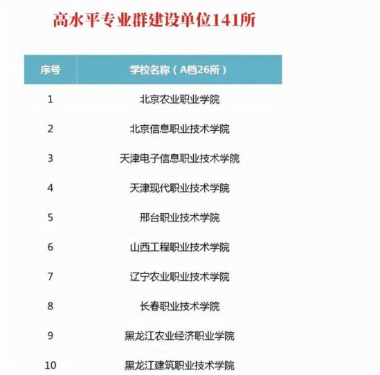 像北京电子工程职业学院、天津市职业大学、江苏农林职业技术学院和无锡职业技术学院等院校进入的都是最高的A级。