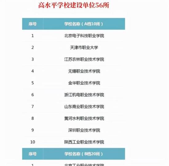 高职版的“双一流”名单公布,一共10所院校获得A级,共197所院校上榜