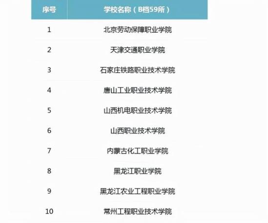 能入选这一等级的职业院校,表示院校的专业群实力还是相对优质的,入选B档的院校有59所,进入C档的院校有56所。