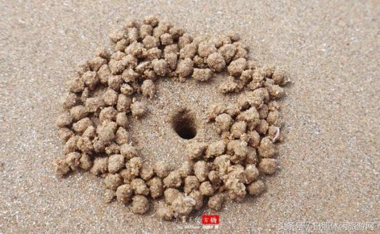 好多沙滩蟹挖过的小洞,成片成片蟹子团起的小球,让我感觉这里的沙滩是他们的家园。