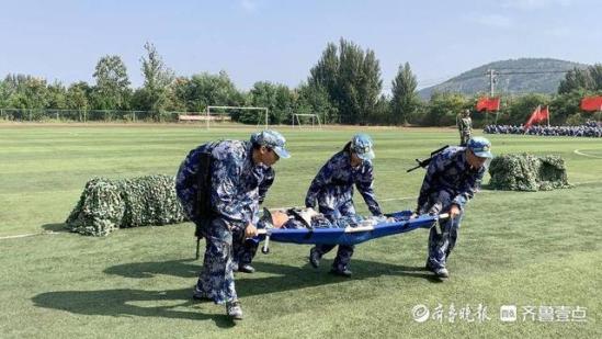 军训科目成果汇报精彩纷呈,13个连队分别进行了分列式汇报,擒敌拳方阵、匕首术方阵、战场医疗救护表演,可谓全程“高能”,13个连队齐声大合唱《没有共产党就没有新中国》,将典礼推向高潮。