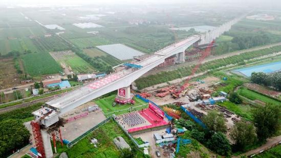 潍烟高铁跨龙烟铁路126米超长转体梁成功转体