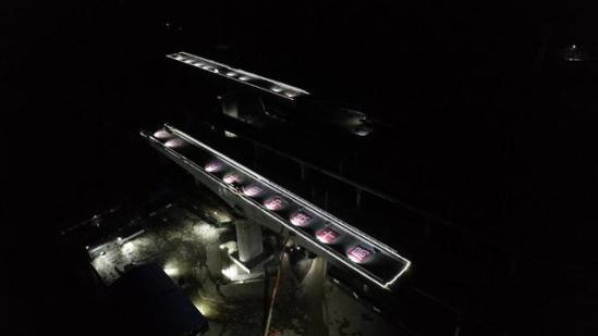 截至目前,两线桥梁桩基础施工已完成超过94%,承台、墩身施工进度稳步跟进,完成80%以上,为桥梁上部结构施工全面展开打下坚实基础。潍烟高铁9座梁场、莱荣高铁7座梁场已全面建成投产,两线共计14座梁场均已开始箱梁架设,形成了全面架梁的大好形势。今年7月以来,莱荣高铁青龙河特大桥32 48 32m连续梁率先合拢,潍烟高铁吕家村黄水河特大桥48 80 48m连续梁顺利浇筑,先后有31联(含现浇)大跨度连续梁完成施工,掀起了连续梁施工大干的高潮。